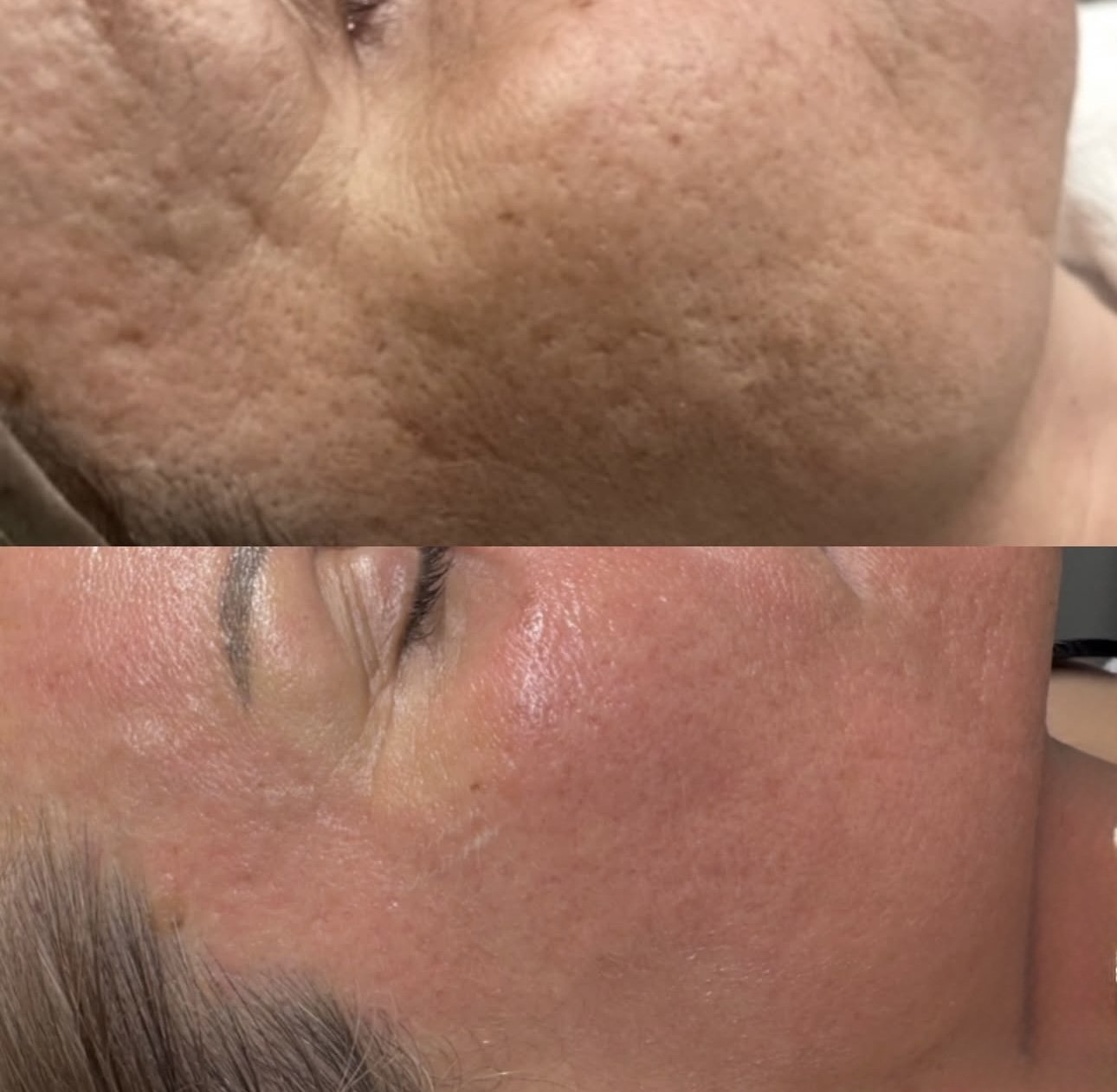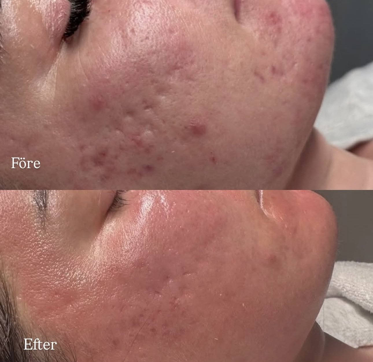Före och Efter underhållande Dermapen behandlingar hos Erica Kliniken